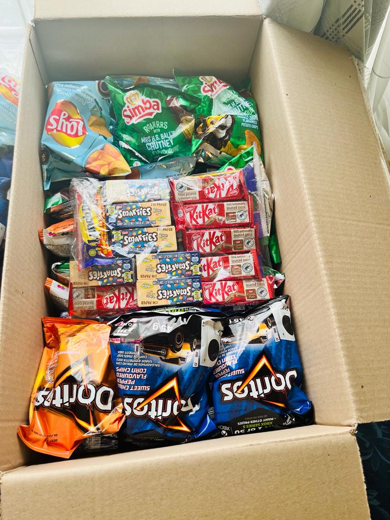2×Mini Snacks,2×Energy drink,Maynards Sweets, Jungle energy bars,2× pens, Journal